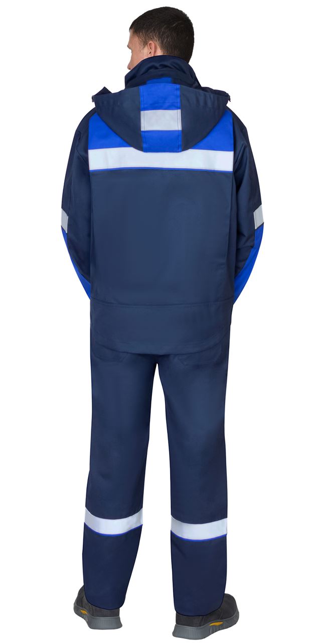 Куртка прямого силуэта, с втачным воротником стойка, с центральной застёжкой на молнию от края воротника, накрытую ветрозащитным клапаном на липучках, с верхними и нижними накладными карманами, со съемным капюшоном, линия низа спинки фигурная. Рукава втачные, с манжетой, частично стянутой на резинку. В куртке предусмотрена лента светоотражающая 50 мм для обозначения сигнальной видимости.