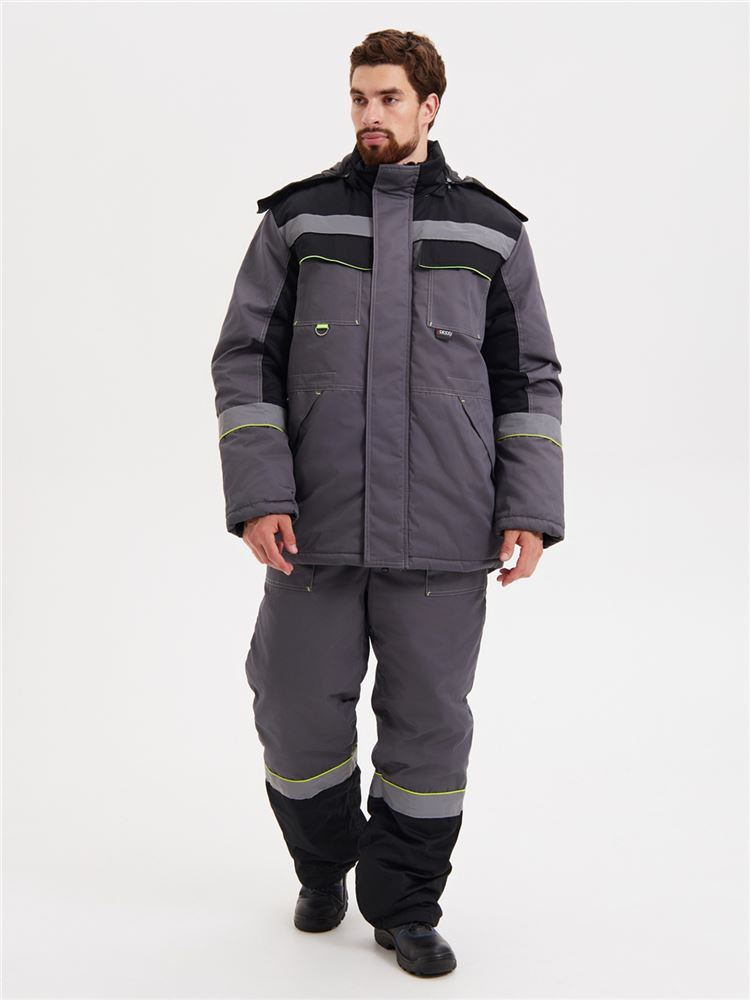 Костюм мужской зимний СИСТЕМА (куртка+полукомбинезон) т.серый/черный/лимон