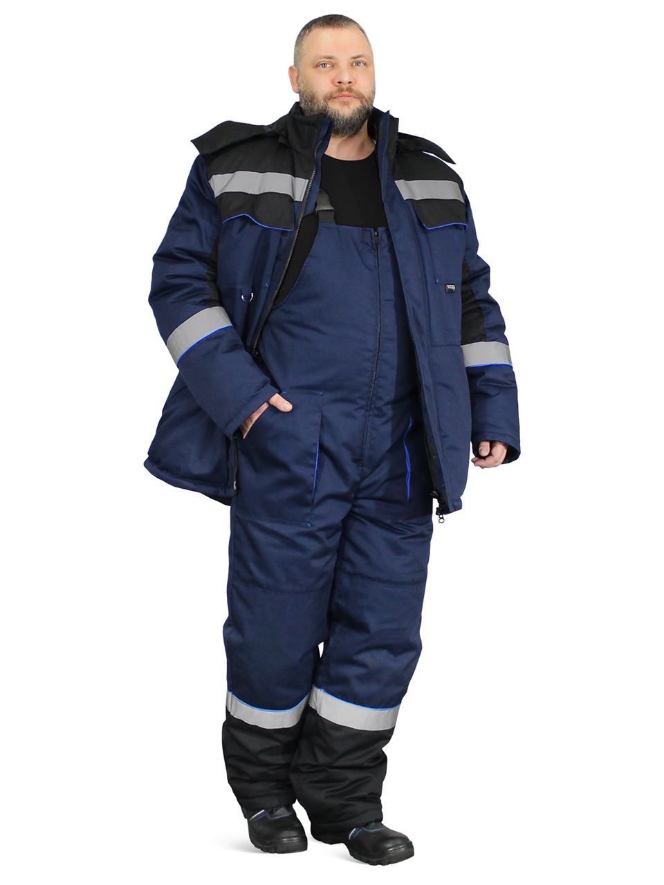 Костюм мужской зимний СИСТЕМА (куртка+полукомбинезон) т.синий/черный/василек