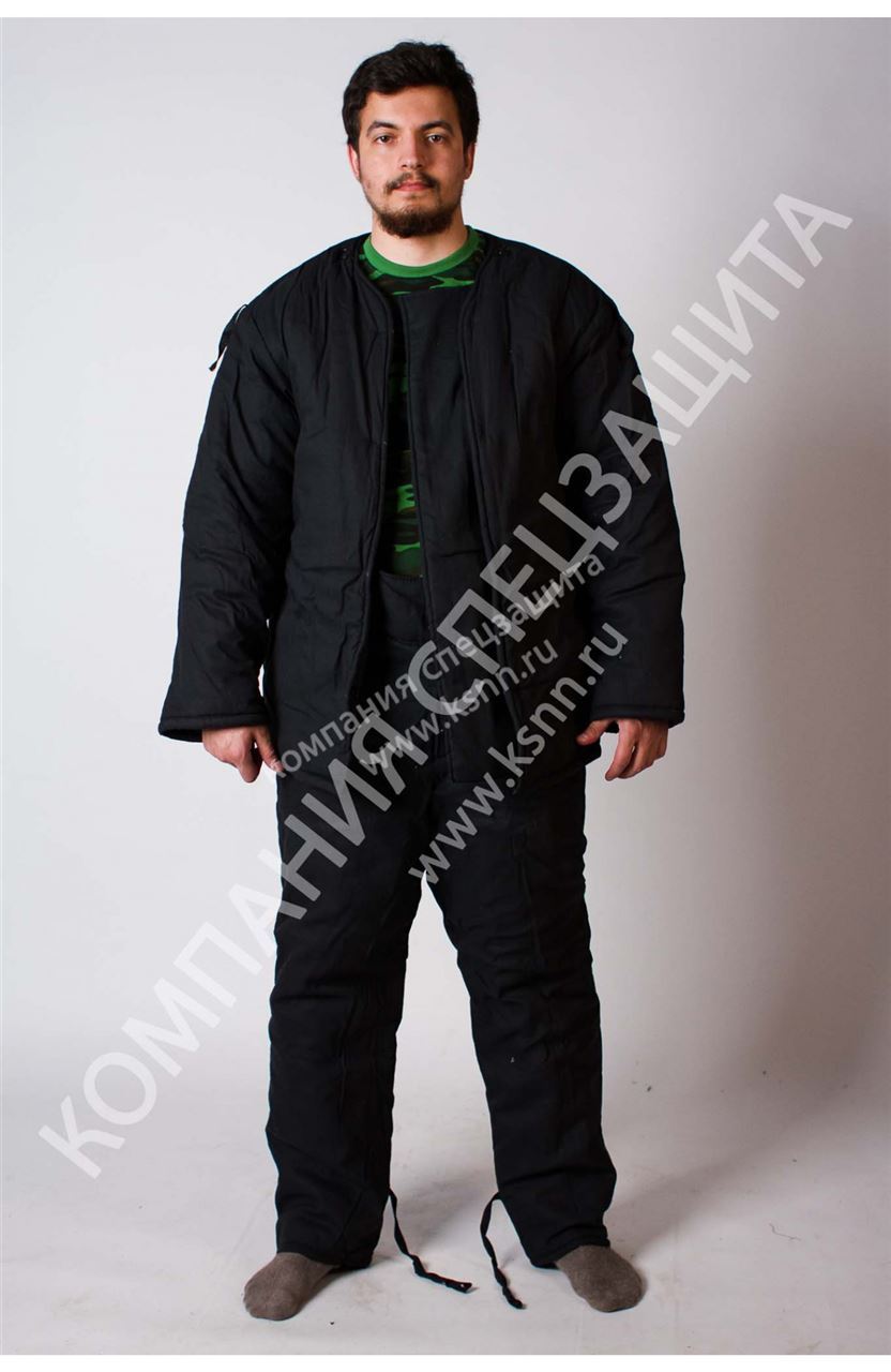 -Пристегивающаяся утепляющая подкладка куртки с втачными рукавами, настрочным ветрозащитным клапаном с изнаночной стороны по левому борту. Подкладка куртки пристегивается к верху изделия по борту и горловине на прорезные обметанные петли и пуговицы, по плечевым швам на завязки. Рукава куртки с двойным слоем утеплителя, полочка и спинка с тремя слоями утеплителя, ветрозащитный клапан с одним слоем. По бортам полочки обметывают по четыре петли с каждой стороны и три петли по горловине спинки. В шов втачивания рукавов вставляют хлопчатобумажную тесьму.