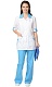 Блуза: полуприлегающий силуэт, воротник отложной, рукава короткие, 2 нагрудных и 2 нижних кармана. Брюки на резинке. Цвет: белый с коралловой отделкой. Ткань: смесовая «Тиси» (65% полиэфир, 35% хлопок) пл.120 г/м2.
