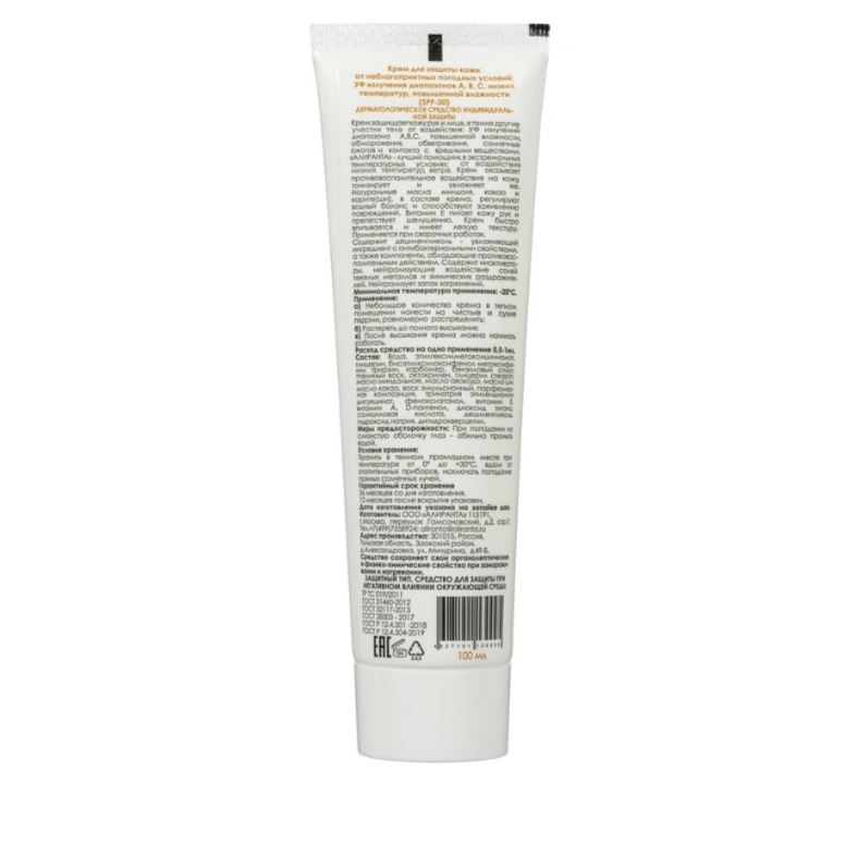 Крем АЛИРАНТА для защиты кожи от производственных загрязнений и УФ излучения диапазона стенд-ап, 100 мл.