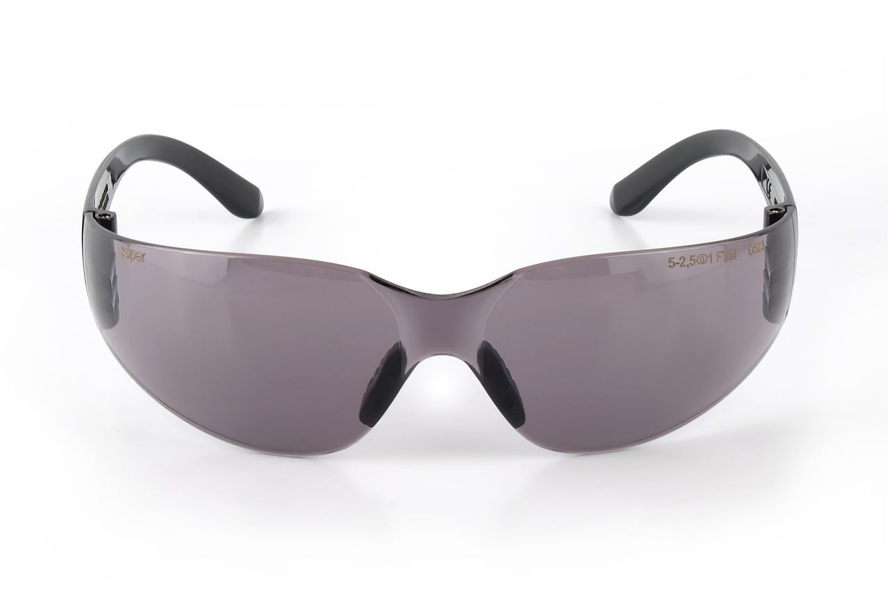 Защитное стекло из поликарбоната серого цвета с твердым покрытием на наружной стороне и с незапотевающим покрытием на внутренней, обращенной к глазу, стороне.
