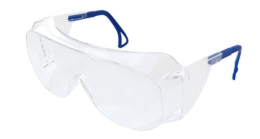 - Надежная защита глаз сверху и с боков от летящих частиц с низкоэнергетическим ударом, от механических воздействий твердых частиц, брызг растворов кислот и щелочей, УФ-излучения.