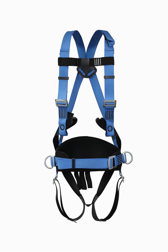 Удерживающая страховочная привязь состоит из наплечных и набедренных лямок, выполненных из различных цветов для удобного одевания привязи, высокий прошитый кушак с влагоотводящей сеткой, 2 боковые точки для удержания и позиционирования, анкерная точка на груди и точка крепления на спине, с удлинителем страховочной точки для удобного присоединения соединительно-амортизирующей системы, индикатор рывка, на кушаке имеются петли для развески инструментов.