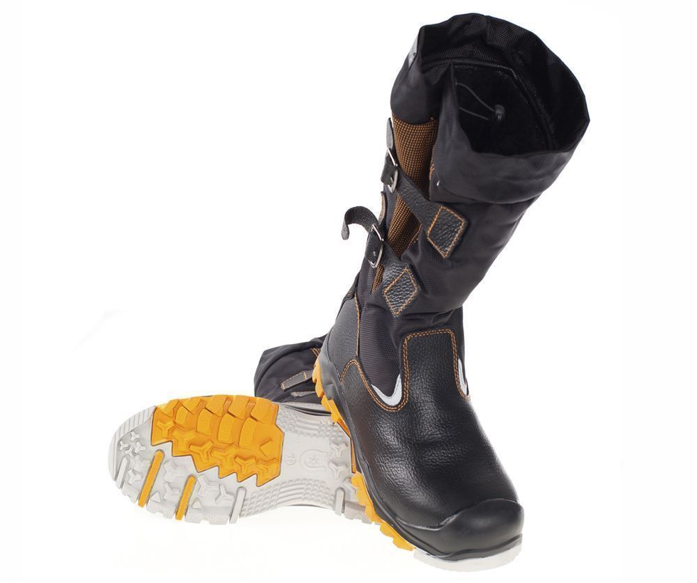 Голенище: из высокопрочного водоотталкивающего текстильного материала, высокой плотности регулируемое по ширине на двух пряжках, с помощью которых обеспечивается плотное прилегание голенища.
