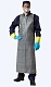 - Фартук с цельнокроеным притачным нагрудником, переходящим сзади в кокетку, к нижней части которой притачана эластичная лента.