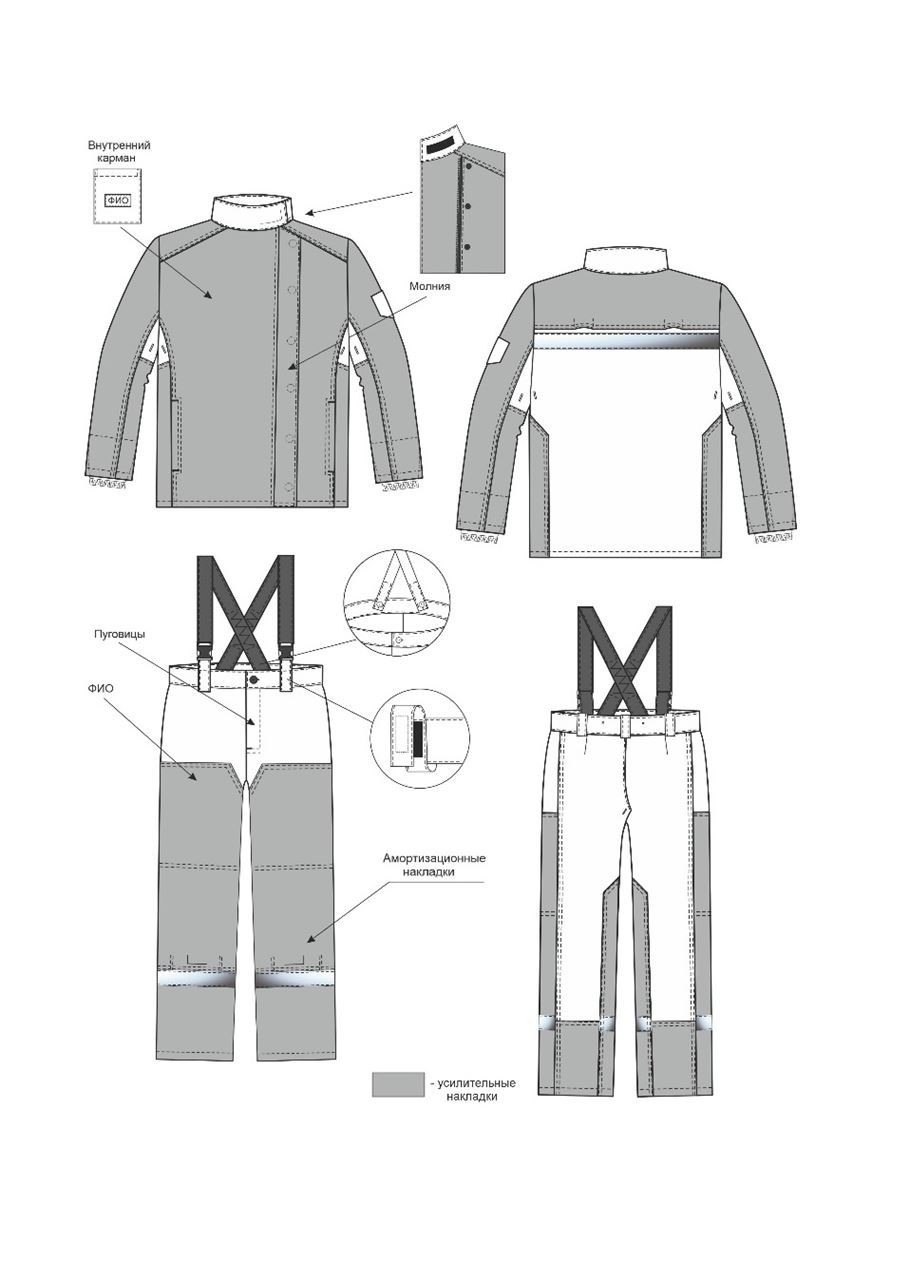 - Огнестойкий СОП по низу передних половинок (под наколенником) и по боковой накладке со стороны шагового шва.