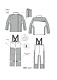 Костюм состоит из куртки и брюк со съёмными бретелями.