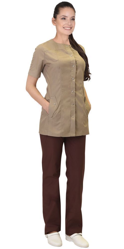 Костюм женский летний СИРИУС-МЕДЕЯ бежевый с шоколадным