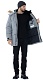 Куртка удлиненная, с центральной застежкой на двухзамковую молнию под ветрозащитной планкой на липучках.