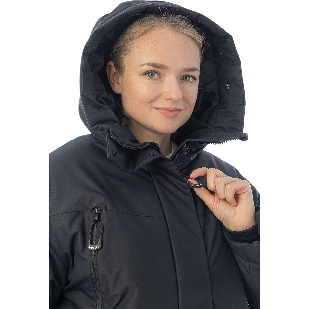 Женская куртка Brodeks KW 258 - ультра-тёплая куртка для работы в северных регионах. Морозостойкая мембранная ткань, много утеплителя, а также длинный крой и глубокий капюшон делают эту куртку лучшим выбором для повседневной носки при низких температурах до -40 С, в сильный снегопад и ветер. Изделие сопровождается сертификатом 3 и 4 класса и рекомендовано для работы в IV и Особом климатических поясах.