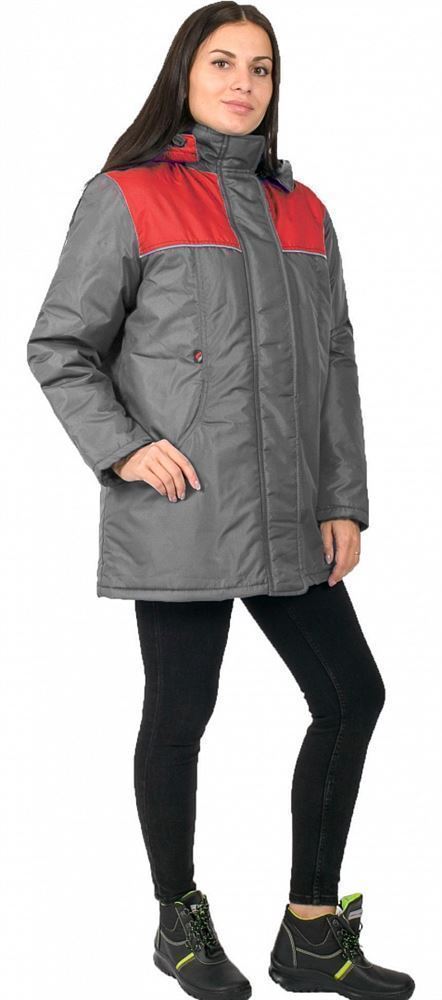 Куртка женская зимняя СНЕЖАНА, тк. Дюспо, т.серый/красный