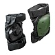 Наколенники с защитной чашкой. Обеспечивают превосходную защиту коленных суставов от избыточной нагрузки, возникающей при длительной работе. Основа наколенников изготовлена из высокопрочной синтетической ткани «Оксфорд», которая устойчива к механическим повреждениям, проста в уходе и легковесна. На внешней части наколенника закреплена защитная чашка из ударопрочного полиэтилена низкого давления. Под защитной чашкой находится амортизирующая вставка из пенополиэтилена для дополнительной защиты коленного сустава. Чашка фиксируется при помощи металлических заклепок. Крепление — широкие эластичные ленты-липучки. Наколенники одеваются поверх одежды.