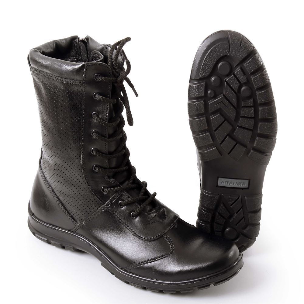 Основная часть берца изготовлена из плотной гладкой кожи, а высокая часть берца из перфорации. И вновь двойная фиксация, скоростная шнуровка и молния.