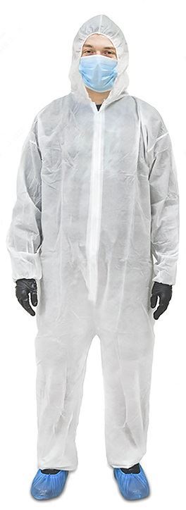 Защитный комбинезон нашел применения во многих отраслях. Защищает одежду и тело человека на различных вредных производствах. Он используется не только для того, чтобы предотвратить порчу одежды, но и для того, чтобы уберечь рабочие поверхности и материалы от попадания пыли, волос, ворсинок. Для пошива костюмов используют нетканый безворсовый материал спанбонд . Его изготавливают путем протяжки полимерных нитей через филеры. Материал получается тонкий, легкий и пористый. Он хорошо пропускает воздух, но задерживает влагу, кровь, биологические жидкости, лаки, краски, продукты нефтепереработки и даже мелкодисперсную пыль. Спанбонд не растягивается, не электризуется и не проводит электрический ток. Он одинаково прочный в сухом и влажном виде, устойчив к истиранию, не подвержен гниению, не меняет своих свойств в помещениях с повышенной или пониженной температурой, не твердеет и не трескается на морозе, не разрушается под воздействием щелочей и кислот. Плотность 60 гр