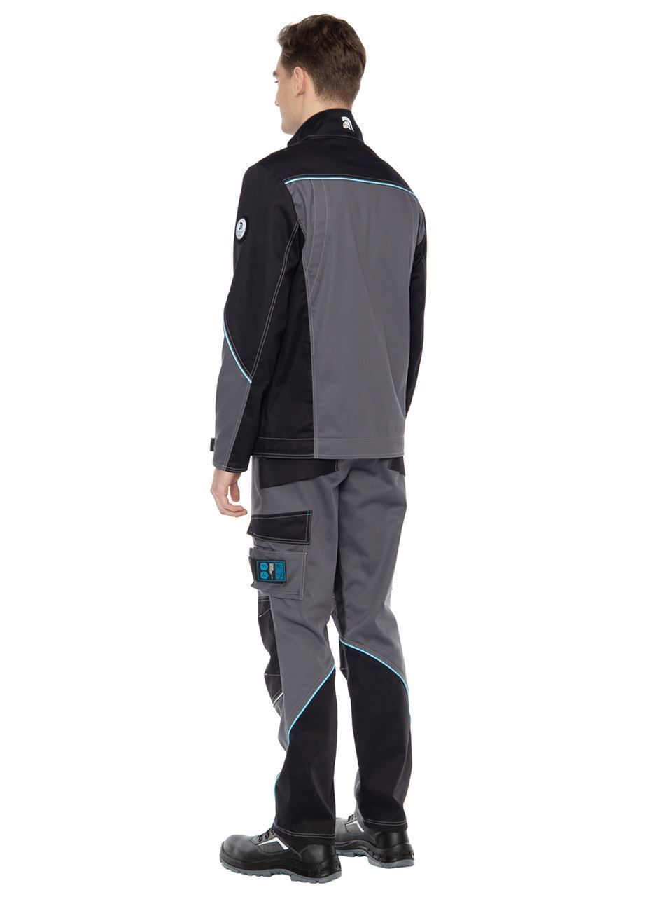 Куртка удлиненная с застежкой на молнию под планкой на липучках. Многофункциональные объемные нагрудные карманы, в том числе на молниях, для средств связи, ПВХ карман для бэйджа. На кармане для средств связи клапан из стропы с шевроном с защитными свойствами. Нижние карманы на молниях в швах. Спинка с кокеткой, отрезными боковыми частями и вентиляционными отверстиями в области лопаток с подкладкой из трикотажной сетки. Рукава втачные эргономичной формы, с вентиляционными вставками из сетки в нижней части проймы и с хлястиками на липучках по низу для регулировки объема. На левом рукаве съемный шеврон из СВМ на липучке. Воротник стойка со световозвращающим трансфером в виде шлема. По низу куртки внутренняя кулиса для регулировки объема.