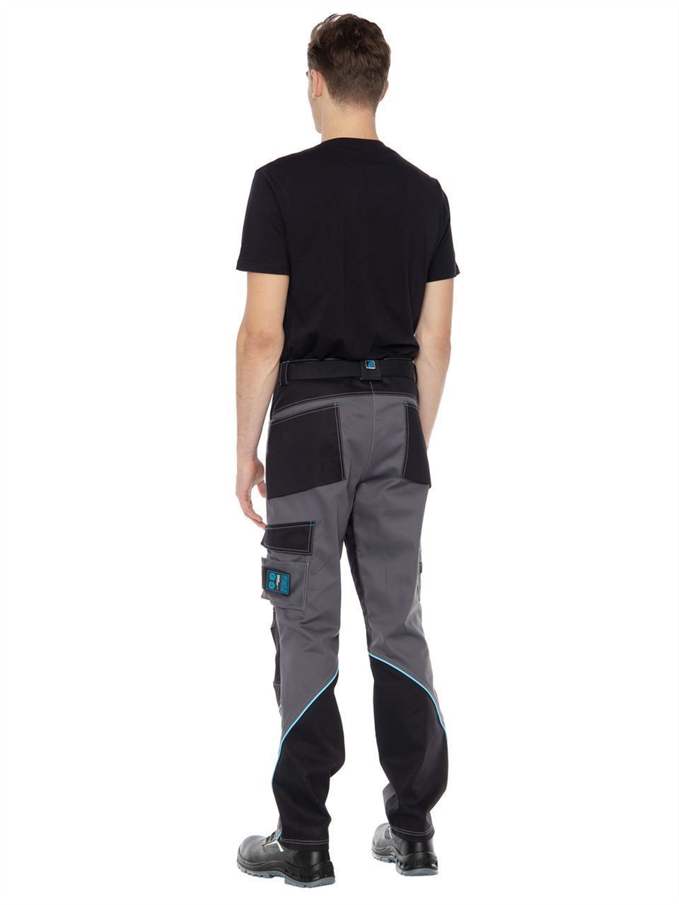 Брюки эргономичной формы с застежкой на гульфик с молнией и пуговицу на поясе. Пояс со шлевками для фиксации ремня из стропы с застежкой и с пластиковой рамкой. На передних половинках верхние боковые карманы и усилительные накладки в области колен. На задних половинках кокетки, вместительные верхние карманы. В области боковых швов брюк на уровне середины бедер расположены карманы с отделениями для средств связи и инструментов. Швы членений костюма подчеркнуты световозвращающими кантами двух цветов.