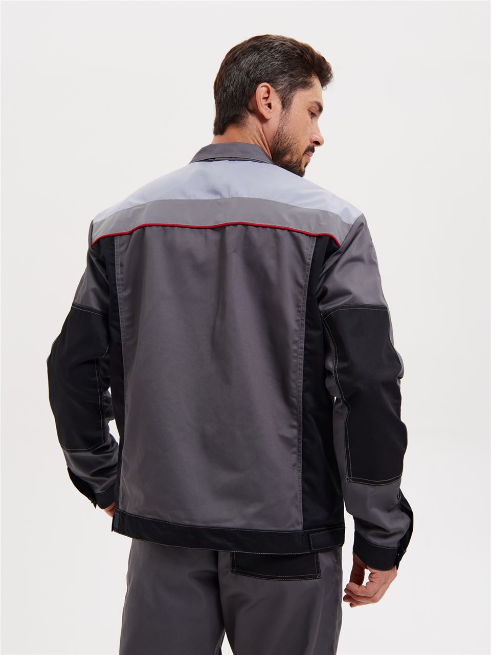 В подмышечных впадинах – люверсы. Светоотражающие полосы шириной 50 мм расположены: спереди в верхней части кокетки, что позволяет обеспечить видимость работника как спереди, так и с верху; на спине - по линии кокетки на полочке.
