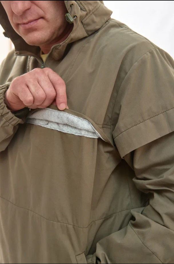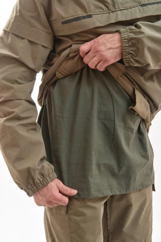 Противоэнцефалитный костюм состоит из куртки типа «анорак» с капюшоном и брюк прямого кроя.