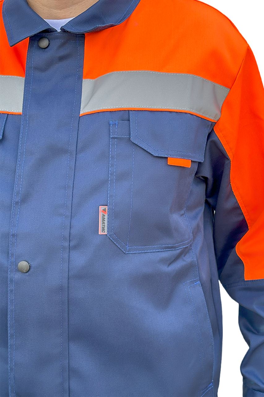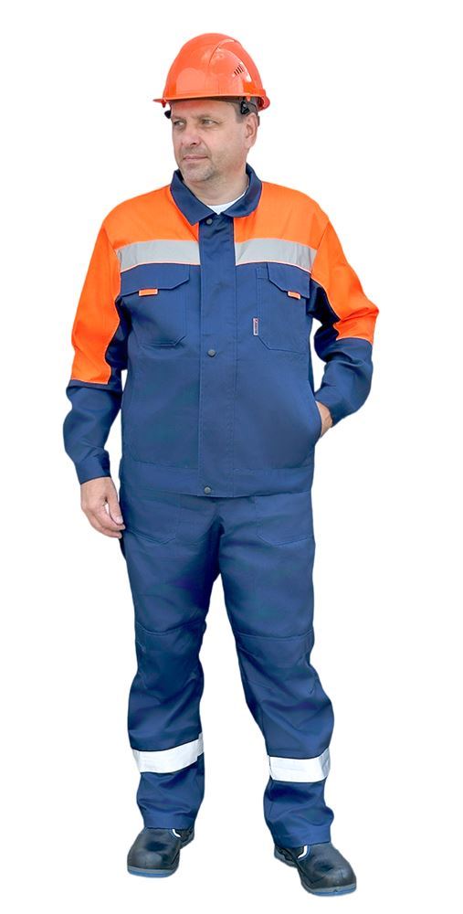 Костюм мужской летний УНИВЕРСАЛ синий/оранжевый (куртка+пк)
