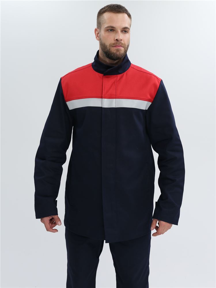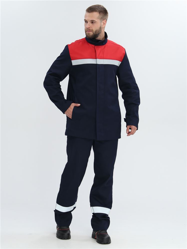 Костюм сварщика ВЕЛД-СОП 1-й класс защиты (тк.Хлопок-ОП,350) брюки, т.синий/красный