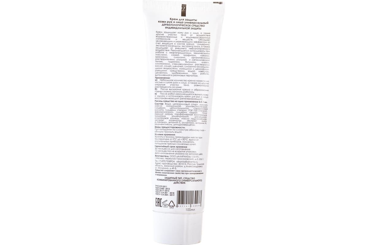 Крем АЛИРАНТА для защиты кожи рук и лица универсальный 100 мл