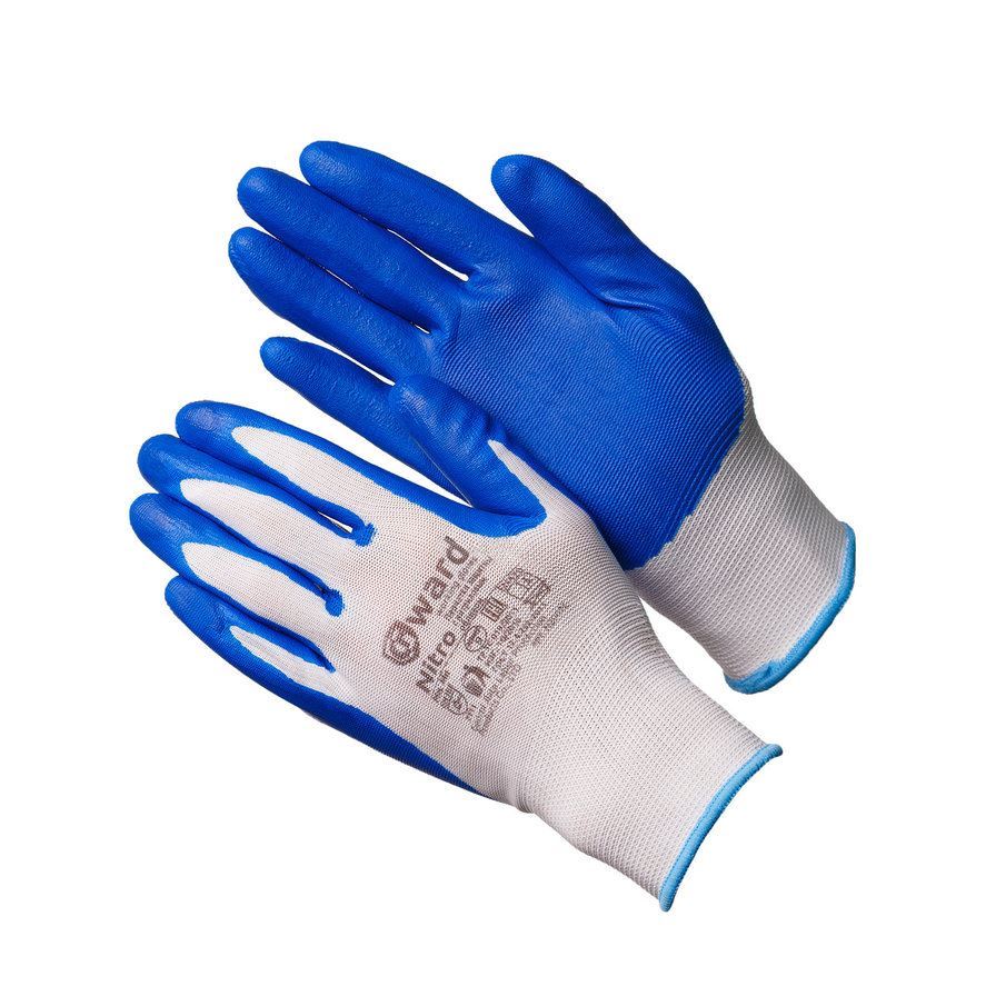 Перчатки Gward Nitro это экономичный вариант перчаток с использованием белого цвета нейлоновой основы и смеси нитрила и других материалов для покрытия синего цвета.