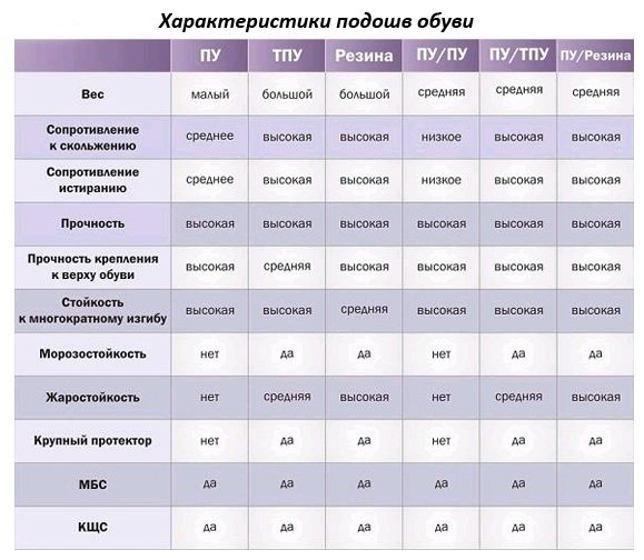 Характеристики подошв обуви